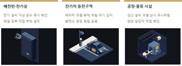 Á¦Ç°¼³¸í WH-L7000-PKG´Â °í¼º´É 5MP ¿È»ó Ä«¸Þ¶ó¿Í ÀÚü °³¹ßÇÑ ÅÍÄ¡ ÆÐ³Î ÀÎÅÍÆäÀ̽º¸¦ Çϳª·Î ¹Àº Àü¹® ÆÐŰÁö ¼Ö·ç¼ÇÀÔ´Ï´Ù. Ä«¸Þ¶ó¿Í ÆÐ³ÎÀ» À¯¼±À¸·Î Á÷Á¢ ¿¬°áÇÏ¿© º¹ÀâÇÑ ³×Æ®¿öÅ© ¼³Á¤À̳ª º°µµÀÇ °üÁ¦ PC ¾øÀ̵µ ÇöÀå¿¡¼ ½Ç½Ã°£À¸·Î ¿Âµµ¸¦ È®ÀÎÇϰí Àåºñ¸¦ Á¦¾îÇÒ ¼ö ÀÖ½À´Ï´Ù. ƯÈ÷ ÀÚü °³¹ßµÈ UI¸¦ ÅëÇØ ½Ç½Ã°£ ¿µ»ó ¿À¹ö·¹ÀÌ´Â ¹°·Ð, ¿Âµµ º¯È¸¦ ÇÑ´«¿¡ ÆÄ¾ÇÇÒ ¼ö ÀÖ´Â Æ®·»µå ±×·¡ÇÁ¸¦ Á¦°øÇÏ¿© ÇöÀå ´ëÀÀ·ÂÀ» ±Ø´ëÈÇß½À´Ï´Ù. »ç¿ë ȯ°æ¿¡ µû¶ó Ä«¸Þ¶ó¿Í ¸ð´ÏÅ͸¦ °¢°¢ ÃÖÀûÀÇ À§Ä¡¿¡ ºÐ¸® ¼³Ä¡ÇÒ ¼ö ÀÖ¾î, ¹èÀü¹Ý ³»ºÎ °¨½Ã³ª ÃæÀü¼Ò ¸ð´ÏÅ͸µ µî ¼³Ä¡ Á¦¾àÀÌ ¸¹Àº ȯ°æ¿¡¼ ÃÖ°íÀÇ È¿À²À» ÀÚ¶ûÇÕ´Ï´Ù. Ȱ¿ëºÐ¾ß ![]() Á÷°üÀûÀÎ ÅÍÄ¡ ÀÎÅÍÆäÀ̽º¿Í ºÐ¸® ¼³Ä¡ÀÇ ÀåÁ¡À» Ȱ¿ëÇÏ¿© ´Ù¾çÇÑ À§Çè ȯ°æÀ» °ü¸®ÇÕ´Ï´Ù.